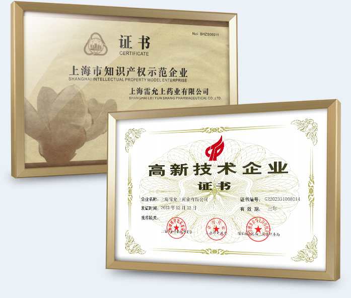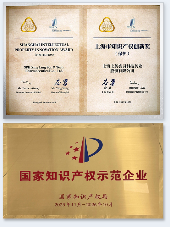 2016年,上海杏彩体育科技药业股份有限公司荣列上海市专利工作示范企业,并于2018年底以优秀成绩通过上海市知识产权局验收。2019年,申报第一届上海市知识产权创新奖(保护)并获一等奖。2019年被认定为国家知识产权优势企业。2023年荣获国家知识产权示范企业、上海市创新型中小企业、上海市专精特新中小企业、上海市产教融合型培育企业。